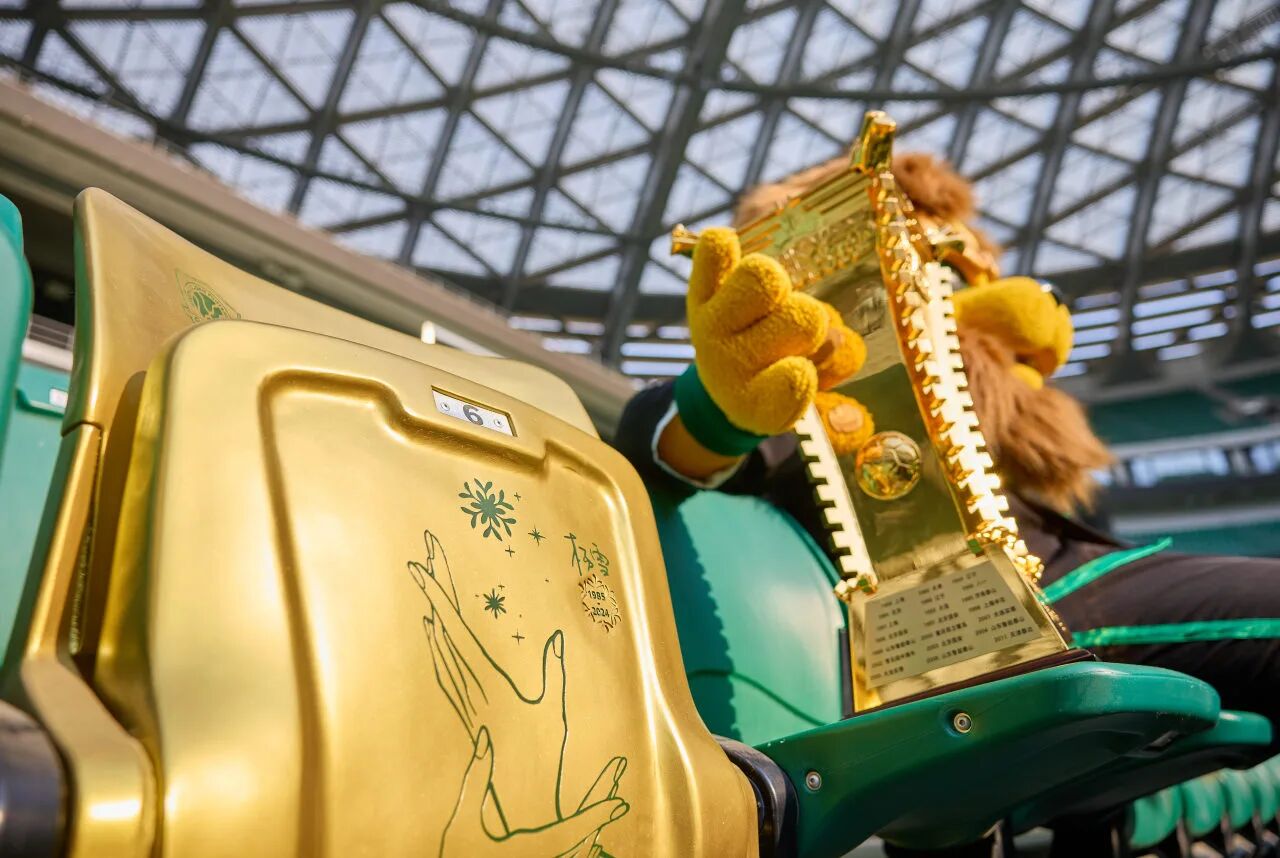 足协杯夺冠之后,冠军奖杯被国安带回了北京,带到了工体,在所有人与奖杯合影的喧闹结束之后,京狮带着奖杯来到了北看台,来到了那个金色的座椅旁边,两片金色合在了一起,或许,这就是国安2025年最好的总结和写照。